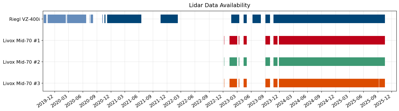 - Does not include spatially distributed measurements, such as point clouds from the Riegl and Livox scanning lidars